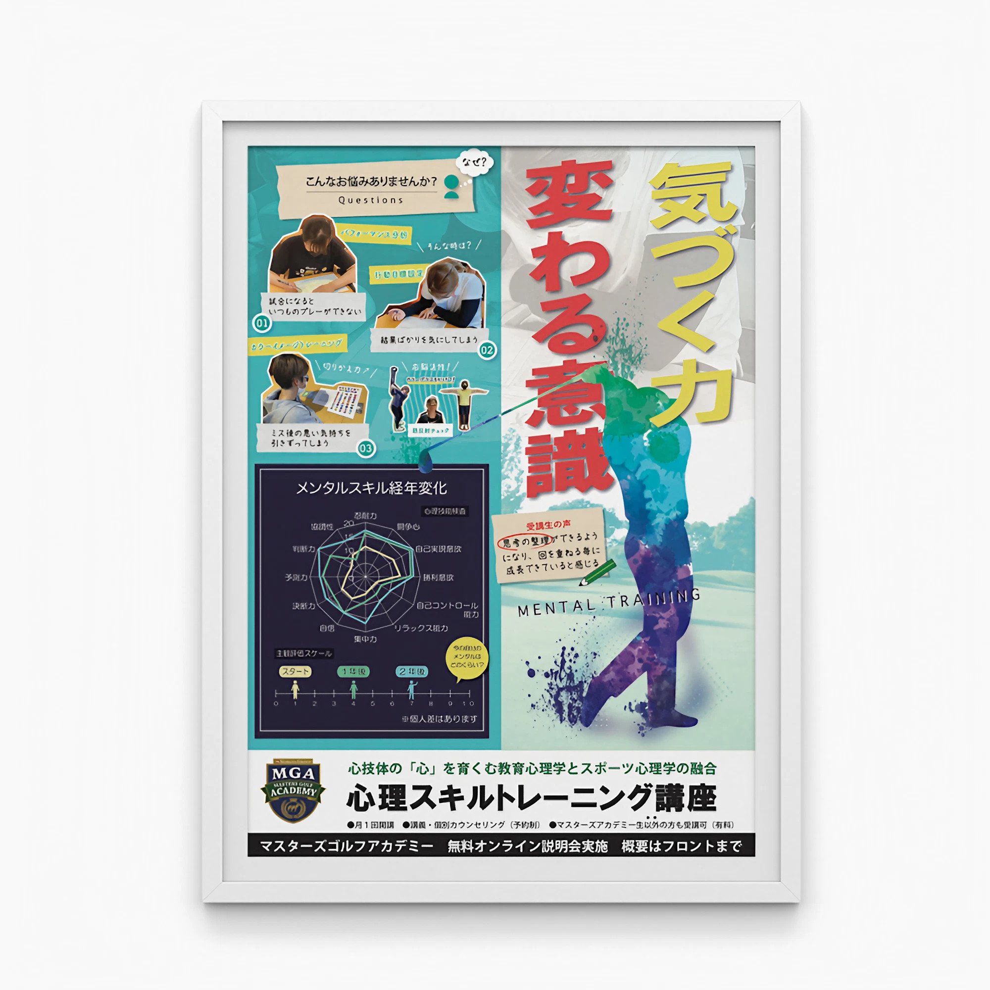 自己分析、行動目標設定、各種メンタルスキル(集中・切り替え・イメージトレーニング他)